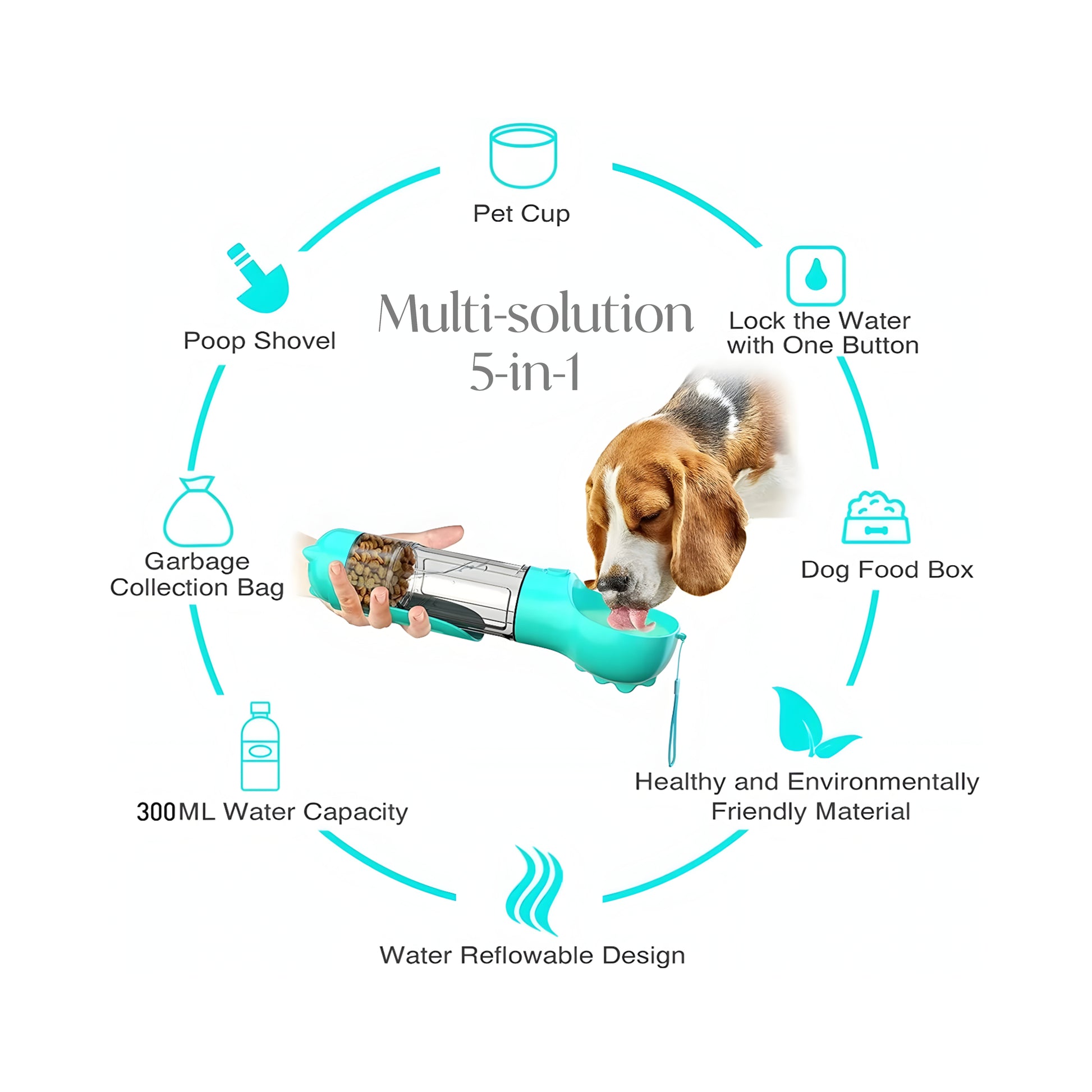 Ensure your pet stays hydrated, well-fed, and clean during your outdoor adventures with our innovative PetPak™ Dog Water Bottle. This versatile 5-in-1 solution features a cup for easy drinking, a water dispenser to keep your pet refreshed, a compartment for storing food or treats, built-in poop bags for convenient waste disposal, and a shovel for easy cleanup.